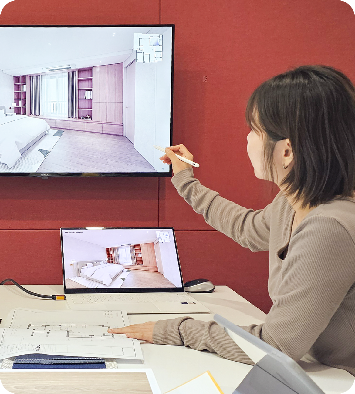 사전에 정리된 인테리어 기준안을 근거로 입찰용 견적서를 준비하고,