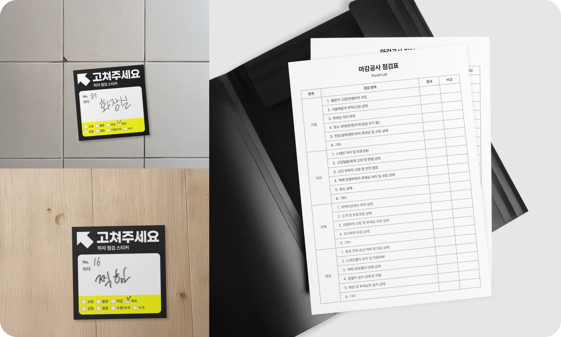 시공 완료 후 나야가 직접 하자 펀치 리스트를 작성하고 고객님께 전달합니다.