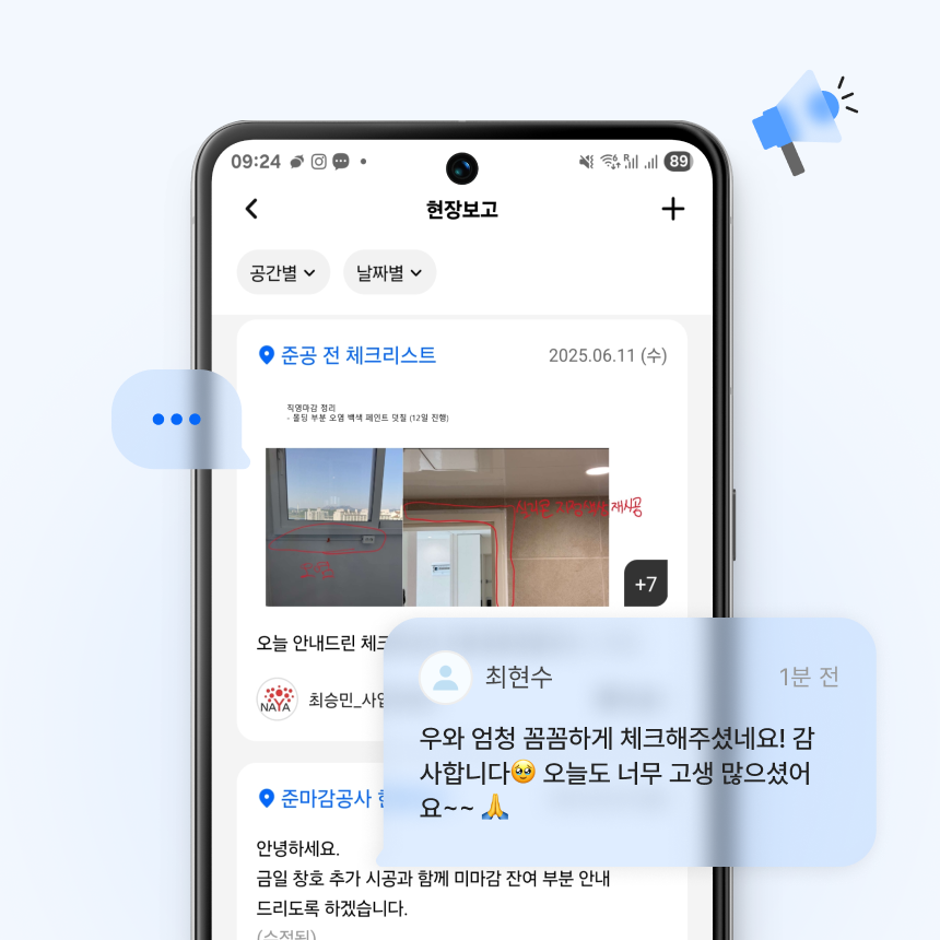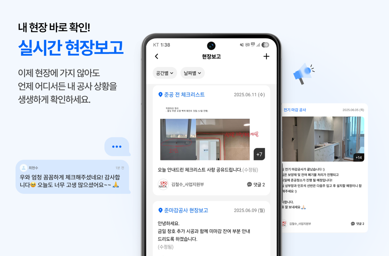 내 공사 상황을 생생하게 확인하세요.