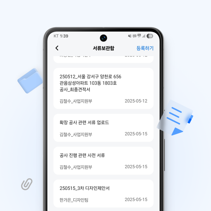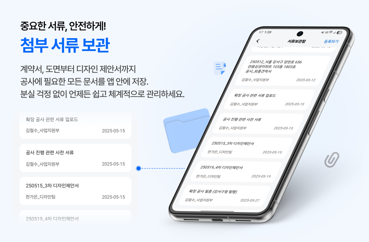 공사에 필요한 모든 문서를 앱 안에 저장.