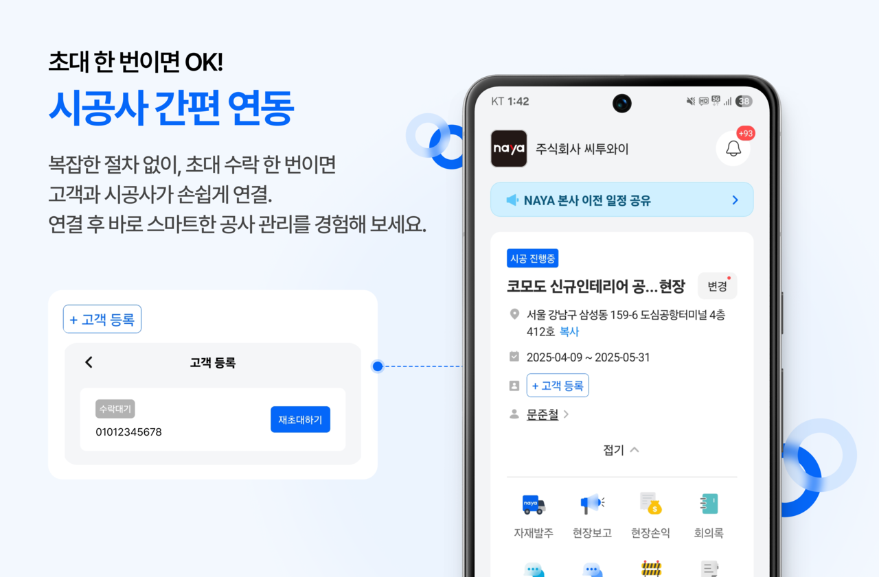 고객과 시공사가 손쉽게 연결.